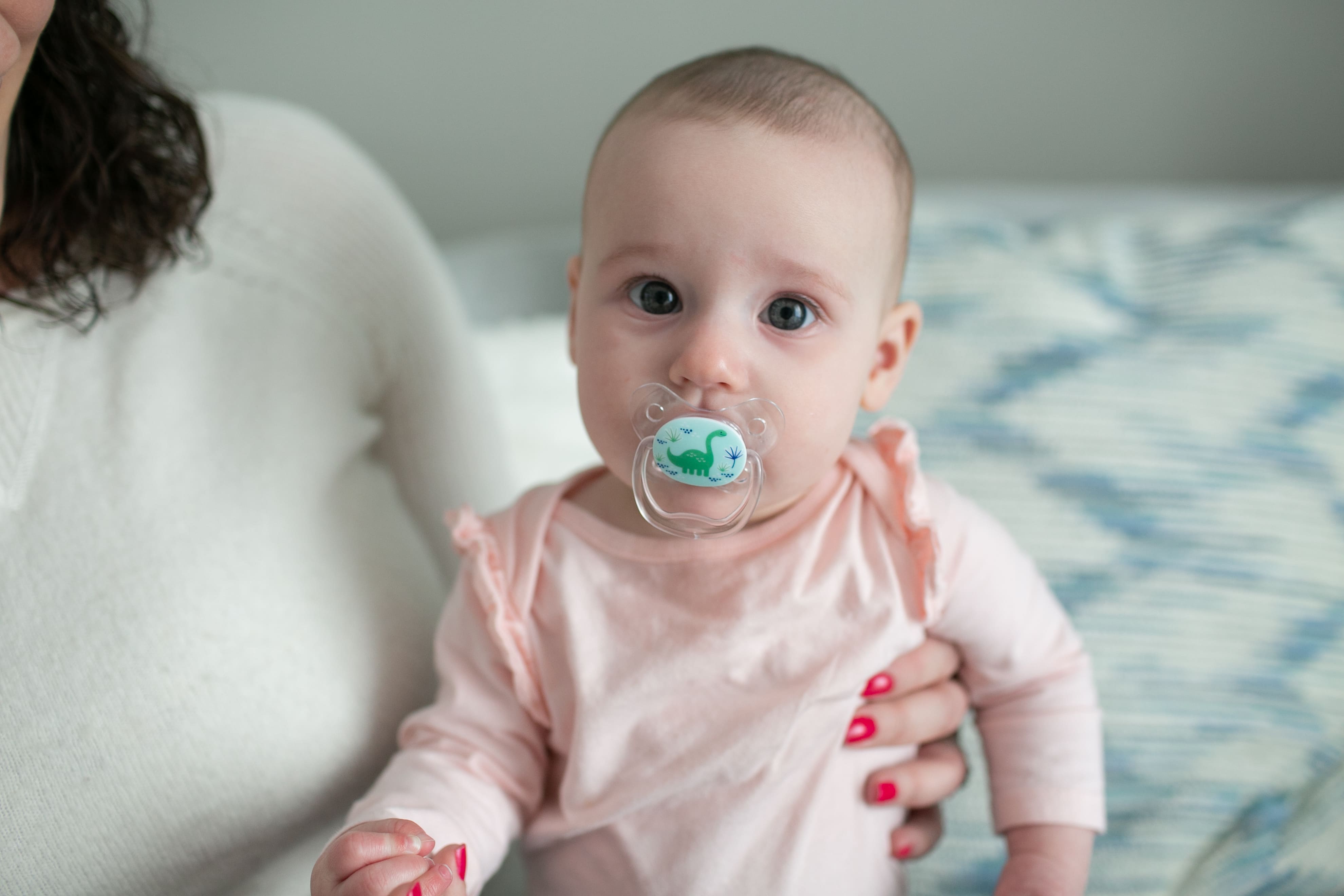 - Hướng phần lõm của ty lên trên nướu và để bé ngậm. Nên đóng nắp lại sau mỗi lần sử dụng để đảm bảo vệ sinh.